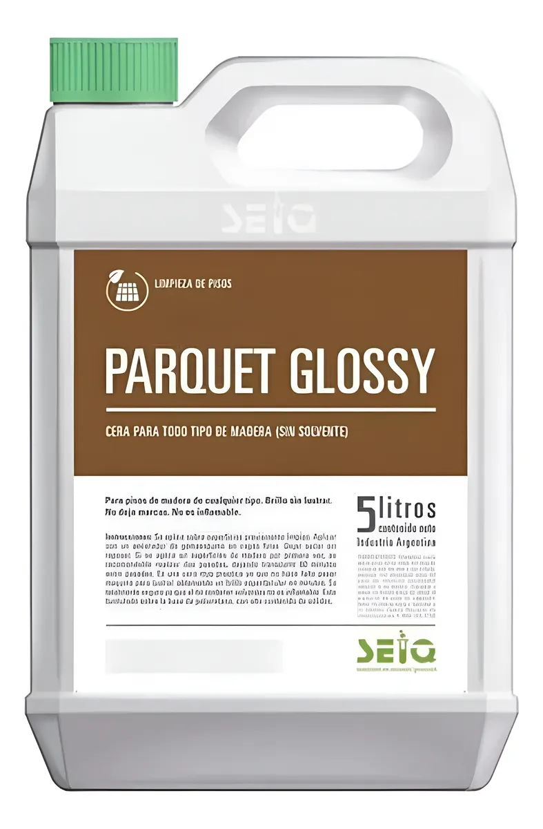 Cera para pisos de madera SEIQ Parquet Glossy 5 L. Fórmula sin solventes, protege y realza el brillo satinado de tus pisos. Ideal para madera, parquet y flotantes.