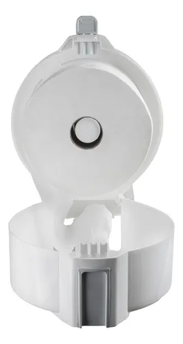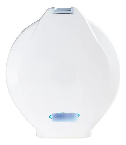 Dispenser de papel higiénico de alto metraje en PVC color blanco. Sistema manual, montaje en pared y traba de seguridad. Ideal para optimizar el consumo.