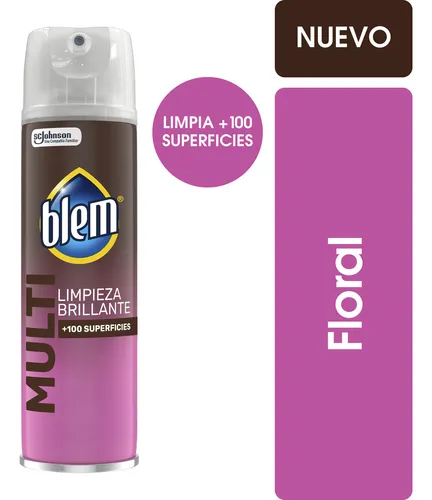 Blem Multisuperficies Floral 360 mL. Limpieza rápida y segura para madera, vidrio y acero. Fórmula pH balanceado con aroma floral duradero.
