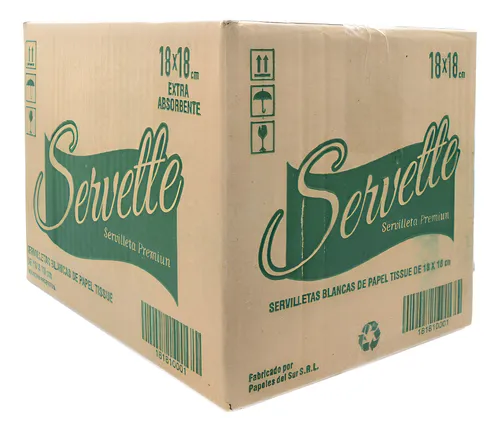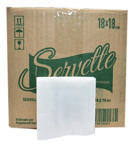 Servilletas de papel tissue Servette blancas 18 x 18 cm. Extra absorbentes y presentación en caja de 850 unidades. Uso doméstico y gastronómico.